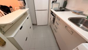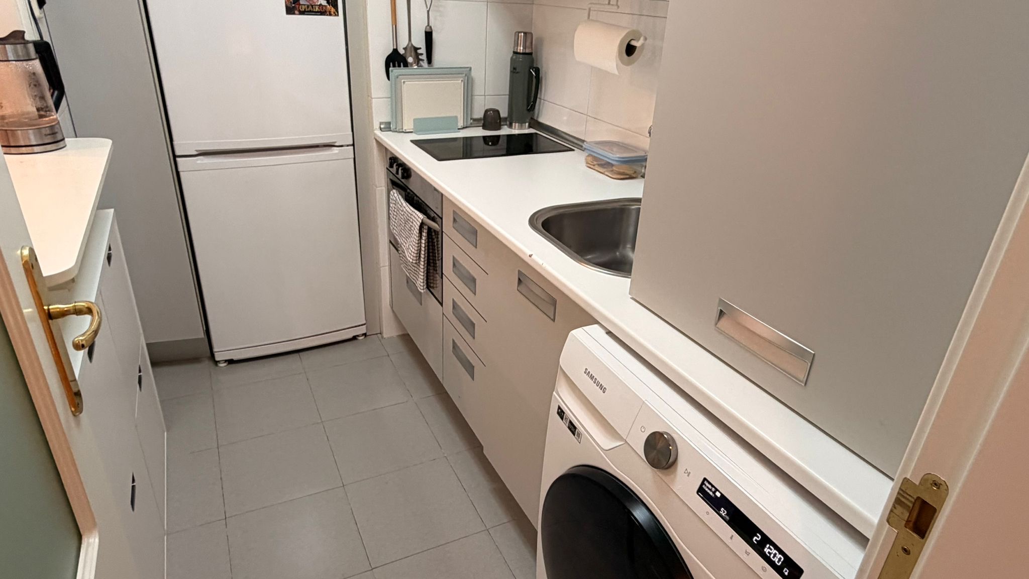 La cocina está equipada con todo lo necesario, incluyendo un frigorífico grande, y el amplio baño cuenta con una ducha moderna. Además, la carpintería y los muebles en lacado blanco aportan un toque elegante al espacio. Este piso incluye un trastero y una plaza de garaje, ¡todo en el precio!